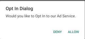 <string name="opt_in_dialog_positive_button">ALLOW</string>D. Opt-In Dialog Reject Button : You would be able change the Reject button text of the Opt-In dialog. For this add the following line to your string.xml file.